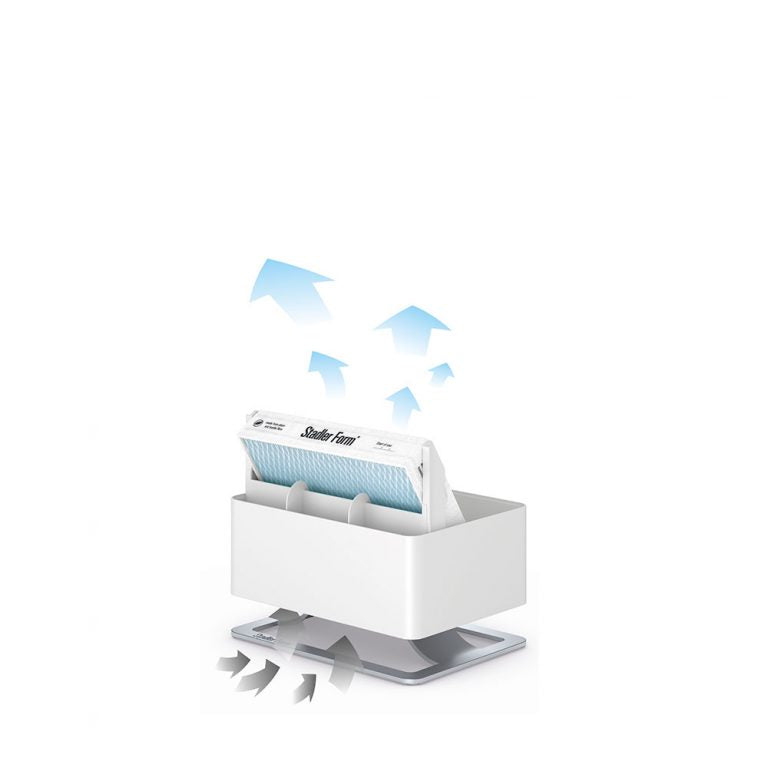 Als je last hebt van droge lucht in huis is Oskar de juiste oplossing. Blauwe LED-lampjes geven het ingestelde niveau weer. Beginnen ze te knipperen? Dan is de gewenste luchtvochtigheid bereikt!